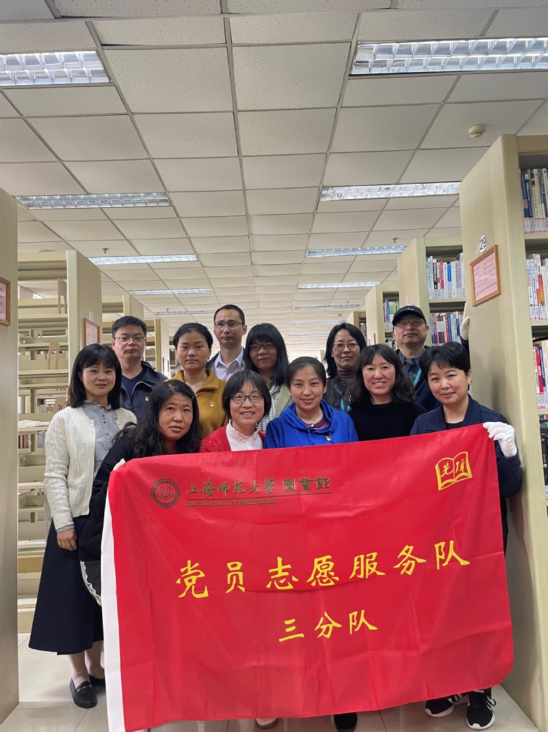 2023年是学校图书馆迎来徐汇主馆大修、赶上新发展机遇之年,面临繁重的图书资源搬迁和调整任务,党总支围绕增强党组织政治功能和组织功能,发挥党员先锋模范作用,于3月17日成立党员志愿服务队,由于党员报名踊跃,基本做到全员参与,就以支部为单位划分成三个支队,并举行授旗仪式。两个多月来,图书馆党员志愿服务队牢牢把握主题教育“学思想、强党性、重实践、建新功”的总要求,坚守“两校区三校园四馆舍”资源优化调整的主战场服务事业发展,坚持问题导向回应需求服务师生,让党员志愿服务队旗在图书馆里高高飘扬。