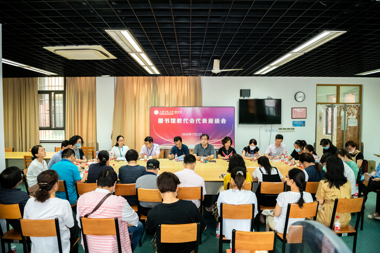 7月2日,图书馆召开教代会代表座谈会,图书馆教代会代表30余人参加,馆工会主席段晓林主持。