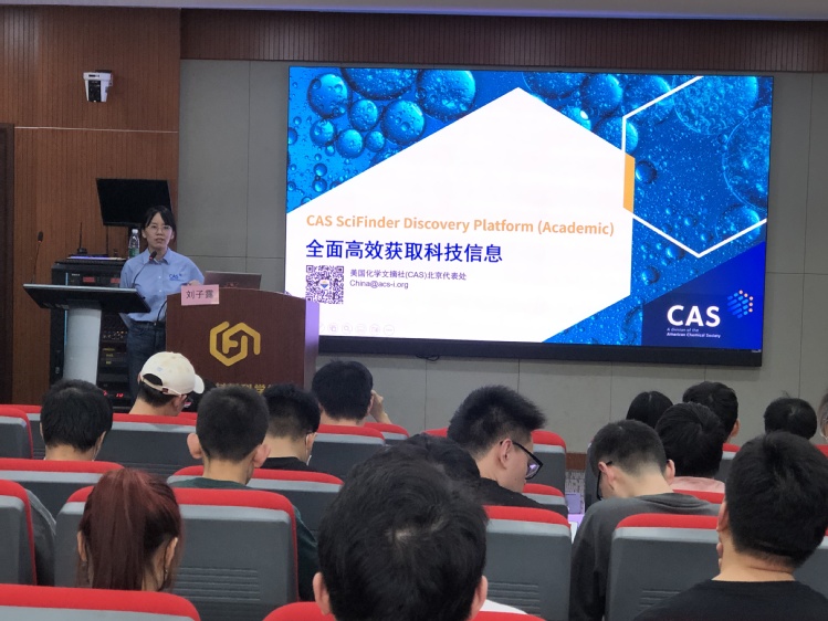 2023年6月6日下午,图书馆组织的“CAS SciFinder Discovery Plarform (Academic)——全面高效获取科技信息”的专题讲座在化材学院6号楼128会议室举行。讲座由美国化学文摘社解决方案专家刘子露博士主讲。化材学院师生五十余人参与此次讲座。