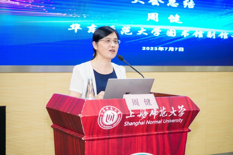 最后,上海高校图工委人才培养支持工作组组长、华东师范大学图书馆副馆长周健对研讨会进行了大会总结。她指出,未来学习中心的建设是高校图书馆发展的一个重要契机,图书馆应以此为机会,实现从资源中心到学习中心的转型,从边缘到主流的跃迁。