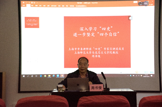 报告会上,周书俊教授首先批判了读史过程中把现象当本质,把事实当规律的认识论偏误,指出“四史”学习必须坚持辩证唯物主义,认清历史虚无主义的极端危害性。然后周教授从“四史”的四个维度,运用大量的事例深入梳理了中国人民在中国共产党的领导下为人民谋幸福、为民族谋复兴,带领中国人民从站起来到富起来再到强起来的伟大实践历程。他希望全体党员要全面客观科学地理解和学习“四史”,在深化学习中坚定“四个自信”。