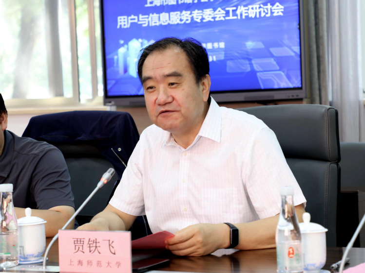 上海师范大学图书馆馆长贾铁飞致欢迎词。首先感谢上海图书馆学会对上海师范大学图书馆一直以来的信任,再次作为新一届用户与信息服务专业委员会的挂靠单位,上海师范大学图书馆一定积极配合学会工作,创造条件支持馆员履职。