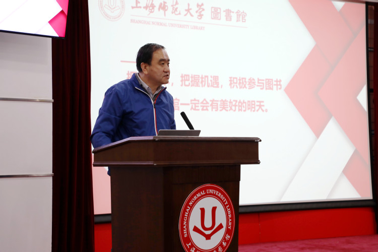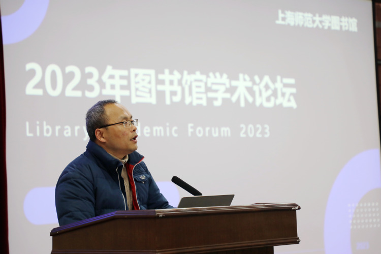 随后,五位老师分别做了主题报告。副馆长段晓林基于近五年上海高校图书馆发展报告数据深入分析了上海师范大学图书馆的现状。校统战部副部长赵龙结合多年古籍管理研究工作的经验探讨了高校图书馆古籍保护工作的现状与推进路径。图书馆学术委员会主任李玉宝聚焦传统书目、学术前沿与海外汉籍整理论题,分享了其研究成果。阅读学习与交流中心(奉贤)主任汤诚介绍了场景理论在城市公共阅读空间中的运用,为图书馆的发展提供了新的思路。特聘馆员胡振华回顾了图书馆“信息化”发展历程,畅谈了自己对“智慧化”高校图书馆建设的认识和思考。