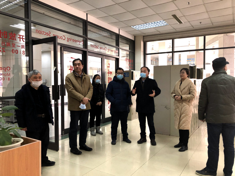 图书馆党总支书记段鸿、馆长贾铁飞等陪同视察。(图书馆)