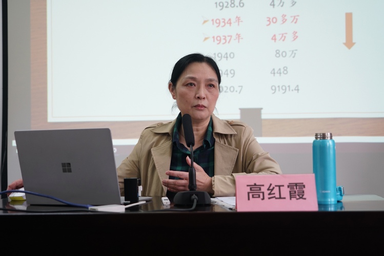 报告会上,高红霞教授利用详实的调查数据和珍贵的历史照片,从革命重点、党员结构、军事力量、活动重心、革命性质、领导中心等六个方面的转变,对中国共产党艰难的发展历程进行深刻剖析。她以中国共产党发展史上非常关键的两个转折为切入点,敏锐抓住1927年4月至8月、1934至1937年两次党员人数变化的细节,揭示了诸多不为人知的历史真实,并指出了两个转折所带来的重要启示。同时,高教授深情诠释了中国共产党的奋斗历程正是无数共产党员孜孜不倦追求共产主义信仰的过程。她带领与会党员重温了老一辈革命家如李大钊、澎湃、夏明翰夫妇、瞿秋白、何叔衡、刘伯坚、方志敏、张璋等人英勇悲壮、可歌可泣的光辉事迹,他们英雄无畏、视死如归的革命精神将深深影响着一代又一代的共产党人。
