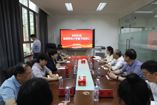 与湖南师大图书馆同仁交流,学习借鉴兄弟馆建设发展的成功经验,对我馆在推进地方高水平大学建设工作中发挥图书馆的作用、馆藏特色文献资源建设、提升图书馆内涵等各项工作扎实有序地推进拓展了工作思路。