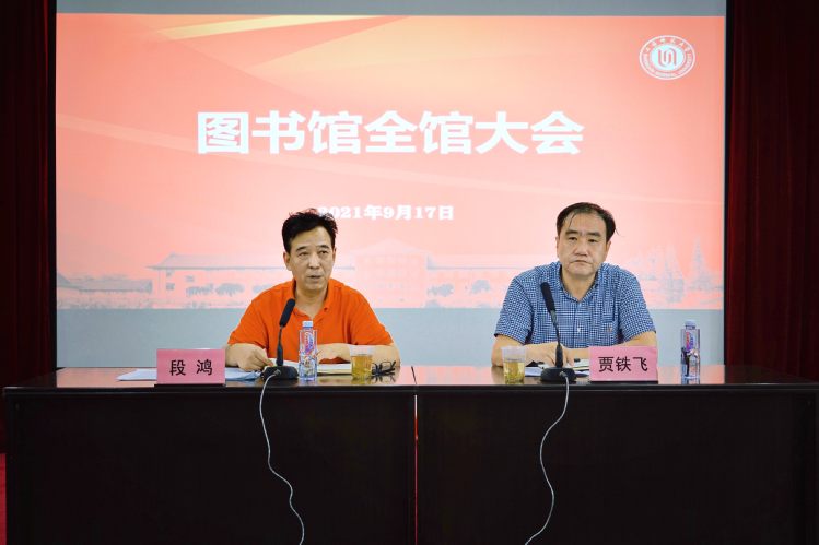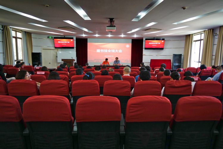 9月17日下午,图书馆在徐汇校区老图书馆第一观摩厅召开新学期第一次全馆大会。图书馆党政领导及全体馆员参加。会议由馆长贾铁飞主持。