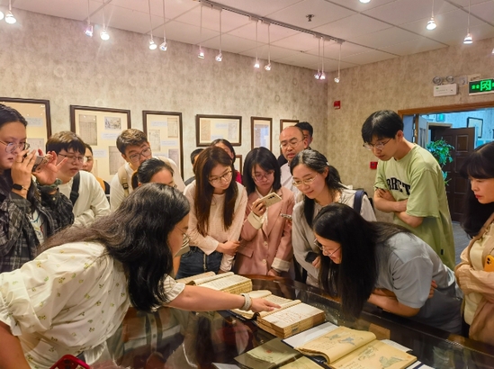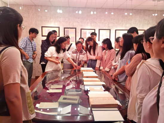 活动中,教师们首次看到“全国古籍重点保护单位”和“上海市古籍重点保护单位”的铭牌,近距离地接触到馆藏珍稀善本,了解馆藏丰厚的古籍藏量和鲜明的馆藏特色,从而更添对传统文化的兴趣,也认知到学校文化的深厚积淀。这次展示的善本还吸引了硕士研究生和博士研究生们前来观摩。