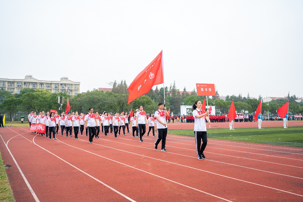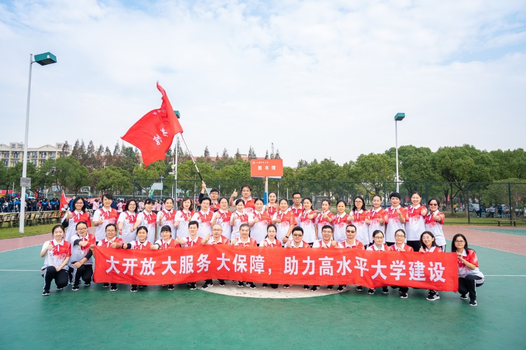 图书馆近50名馆员组队参加了运动会。入场式上,馆员们踏着整齐的步伐,通过主席台接受学校领导检阅,以饱满的精神状态展示了“大开放、大服务、大保障”的工作理念,生动诠释了图书馆全力助力学校学科建设和发展的工作目标和努力方向,展现了图书馆人团结奋进、昂扬向上的精神风貌。