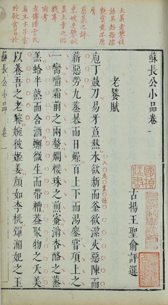 此次入选第五批《上海市珍贵古籍名录》的两种古籍,分别是明嘉靖刻本《唐宋白孔六帖》一百卷目录二卷,明万历凌启康刻朱墨套印本《苏长公小品》四卷。入选第六批《上海市珍贵古籍名录》的一种古籍是清乾隆书业堂刻本《芥子园画传》五卷。