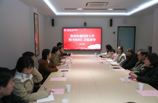 曹鹏对同济大学图书馆同仁的到来表示热烈欢迎,介绍了我馆去年九月份刚刚改造完成重新开馆的徐汇主馆的基本概况。贾铁飞、段晓林交流了空间改造的具体实施过程、取得的成效经验等。双方就图书搬迁、空间布局、展墙策展、营销活动开展等工作内容进行了积极的互动与讨论。