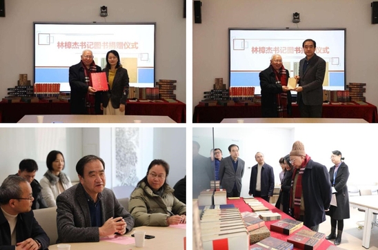 12月27日下午,学校原党委书记林樟杰图书捐赠仪式在徐汇校区图书馆会议室举行。校党委副书记杨海燕、校原党委书记林樟杰、校离退休工作部(处)和图书馆党政班子以及相关工作人员参会。捐赠仪式由图书馆党委书记曹鹏主持。