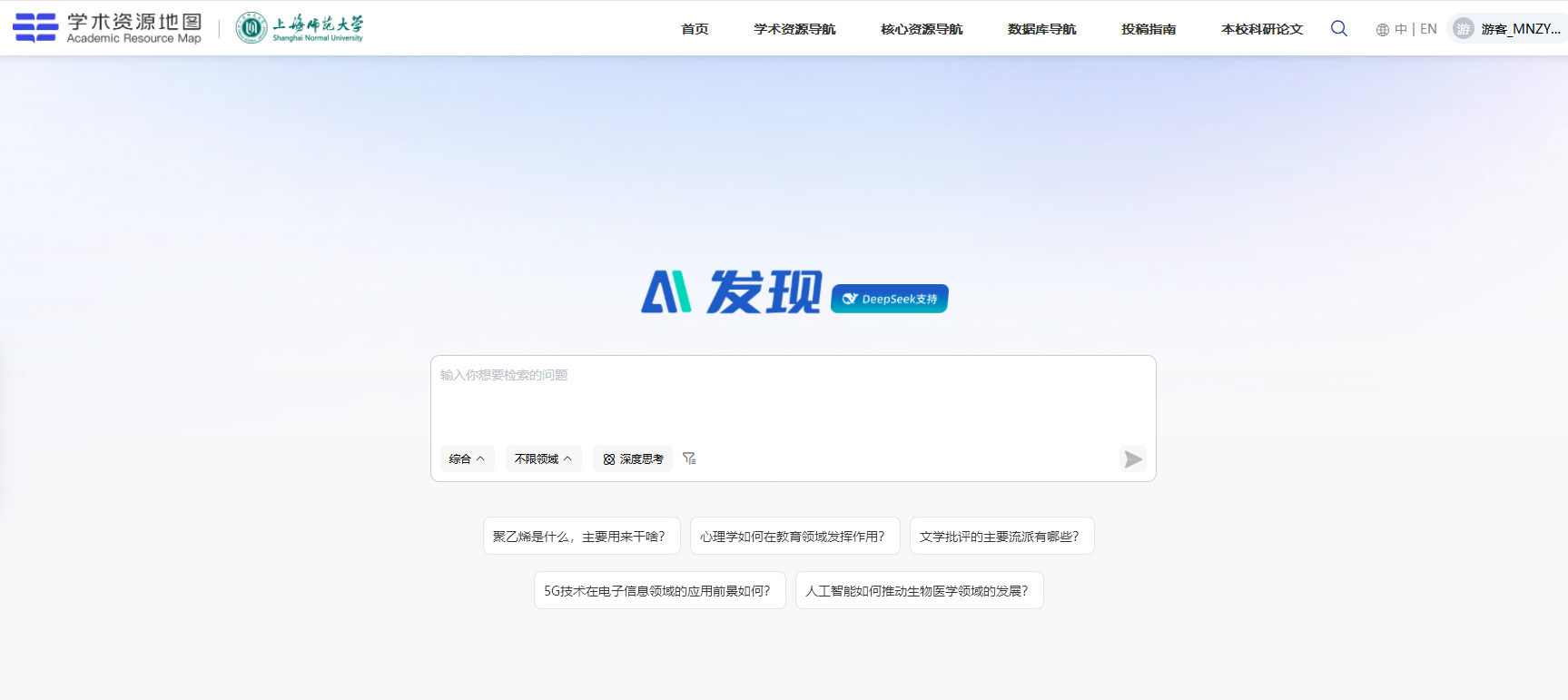 “AI发现”是学术资源地图平台最新推出的一项创新功能,基于Deepseek技术构建,,提供一站式馆藏资源发现场景。该功能旨在克服传统资源发现方法的技术限制,帮助用户更加精准高效地获取所需的各种馆藏资源。