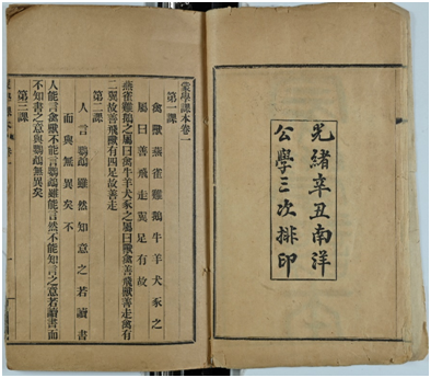 1897年,南洋公学师范生陈懋治、沈庆鸿等编著《蒙学课本》,是国人自编教科书之始,在中国近代教育史上具有重要历史地位,有“中国近代教科第一书”之称。