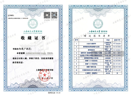 图书馆对杨德广教授的慷慨捐赠表示衷心感谢,并将妥善收藏、合理利用这批图书,使其在教育科研与人才培养中充分发挥作用。