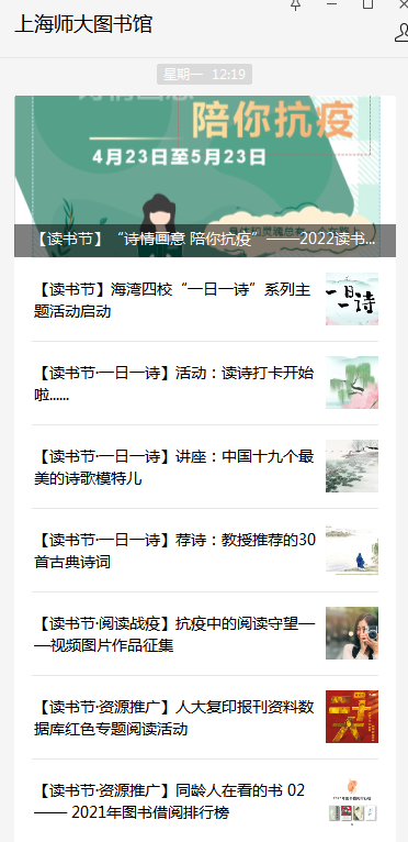除开幕式当天的诗词赏读讲座、诗词打卡活动开启外,校关工委 2022 读书 活动也于同日举办云端启动仪式。我校历年读书节的传统阅读品牌项目于读书文 化节前后陆续推出,包括图书馆的英文原著立体阅读系列、校团委的“早安师大” 阅读活动系列,校关工委的学理论、读书好、星火传读书活动系列等等。这些活动,与今年新推出的“一日一诗”系列活动一起, 极大地丰富了读书节的内容和形式,通过主题阅读,弘扬传统文化,汲取民族的 精神力量,坚定文化自信,同时增强师生战胜疫情的信心和决心。