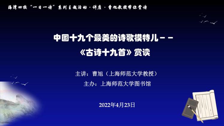 简短的开幕式后,作为“一日一诗”主题系列活动的重磅开场秀,上海师范大学人文学院曹旭教授为大家带来了《中国十九个最美的诗歌模特儿--<古诗十九首>赏读》的精彩讲座。