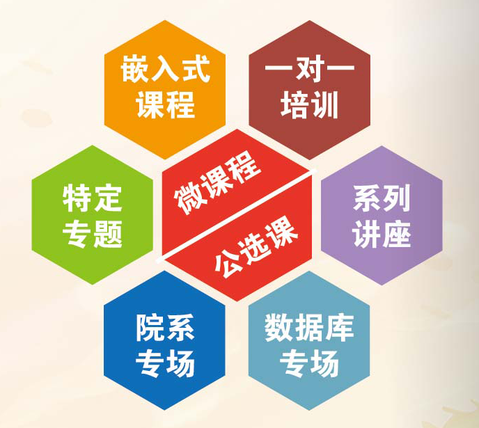 为了更好地帮助全校同学熟悉图书馆资源和服务及其利用方法,全面提高信息素养,图书馆每年向全校本科生和研究生开设选修课程,并常年举办不同主题的“专题讲座”,以帮助师生掌握信息检索和利用的基本方法和技术,从而提高获取文献以及自如地利用各种图书馆资源、网络学术资源以及相关软件工具的能力。除此以外还有定题讲座、微课堂。