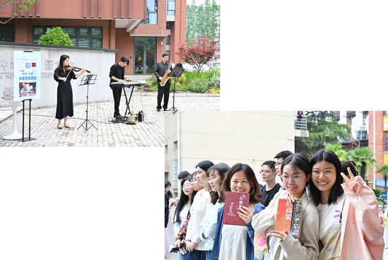 “听音乐 送名著——书香音乐竞猜活动”作为开幕仪式前的暖场活动,巧妙融合音乐艺术与文学经典,为校园注入浓郁的人文气息,吸引了大量学生驻足参与,争相抢答曲目关联的经典作品,《红楼梦》《西游记》《围城》等名著陆续送出。活动组织者、图书馆褚老师表示:“用音乐解码文学密码,让经典以更鲜活的方式走进青年心灵,正是本次活动的初衷。”
