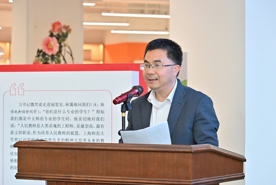 4月22日下午,由校图书馆、工会、团委、关工委共同主办,奉贤区域图书馆联盟各馆、学校各学生社团合作协办,以“破茧而出:AI时代的阅读”为主题的2025上海师范大学读书文化节在徐汇校区图书馆主馆一楼大厅举行开幕仪式。副校长李晔出席并讲话,各主办单位领导及师生代表参加活动。开幕式由图书馆副馆长段晓林主持。