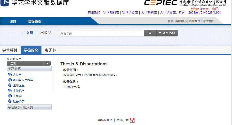 上海师范大学学位论文数据库是上海师范大学毕业研究生学位论文递交系统,可查询、下载历年上海师范大学研究生学位论文。