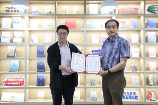在座谈交流中,贾铁飞与吴一峻分别对各自的发展概况、资源优势以及本次共建的背景和目标进行了介绍,双方均表示将以此次共建为契机,加强资源共享与交流合作。随后,曹鹏和吴一峻共同签署了《党建共建倡议书》,建立常态化协作机制,通过党建共建,共同探索党建与业务工作深度融合的新路径,构建文化育人创新体系。