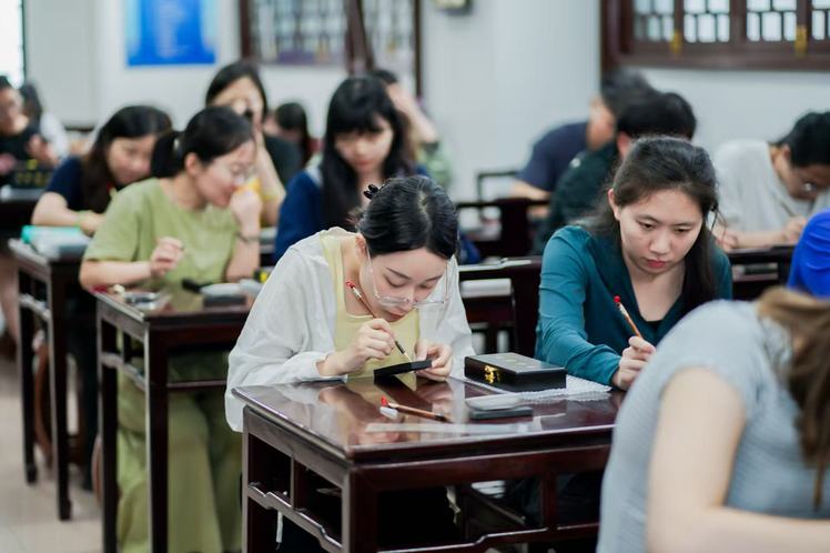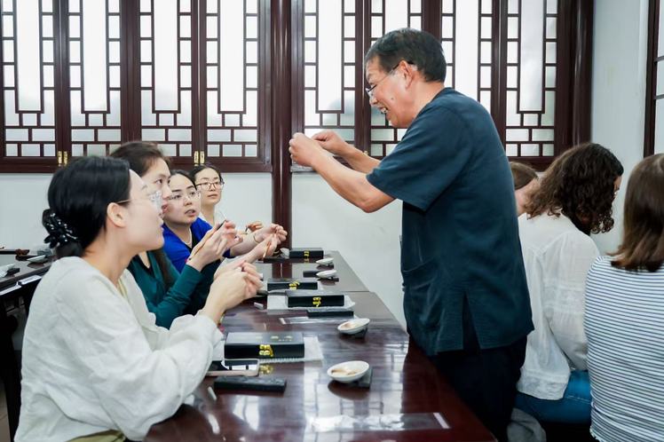 尤其值得欣喜的是,本次“非遗+体验”活动赢得了不少海归教师和留学生的强烈兴趣,他们的积极参与,让金纹璀璨的墨锭化身中西文明互鉴的桥梁,留学生则成为跨文化交流的传播使者,取得了文化传播的溢出效应。一位留学生表示:“描金时,仿佛能感受到中国人‘以器载道’的哲学”。(供稿、摄影:特藏保护与研究中心)