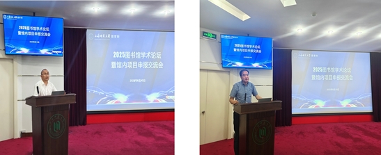 6月10日,图书馆学术论坛暨馆内项目申报交流会在徐汇校区老图书馆第一观摩厅举行,包括图书馆党政领导在内的近50人参会。图书馆党委书记曹鹏和馆长贾铁飞分别进行开场讲话与总结发言。他们感谢各位项目申报人的积极参与,以及学术委员会对论坛召开做的充分准备,充分肯定了本次申报项目的选题,对大家开展高质量的研究,产出高质量的成果提出了要求。