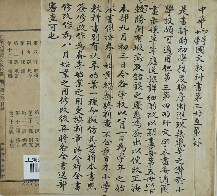 首先推出的是《中华初等小学国文教科书》,共八册,1912年2月开始出版。馆藏八册全,第三册为中华书局初审本。附当时教育部对第三至第八册的初审批语,另有修正签示三十八处。