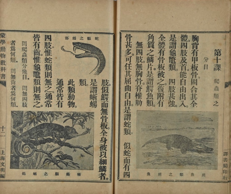 蒙学科学全书,也称为蒙学教科书。1902年,廉泉、俞复、丁宝书等创办文明书局,1903年文明书局开始出版一套各科都冠以“蒙学”二字的教科书,这是我国最早的分科教科书。至1905年,《蒙学教科书》达25种37本,包括文法、修身、中国历史、外国历史、中国地理、外国地理、心算、笔算、珠算、植物、动物、格致、生理、卫生、天文、地质等。馆藏9种10余册。