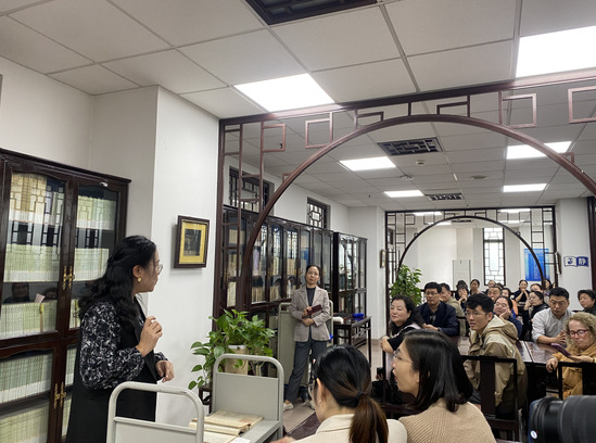 活动在宋雪春副研究馆员的导览中拉开序幕,精彩的解读带领校内外师生第一次近距离地接触古籍并亲手操作雕版印刷。