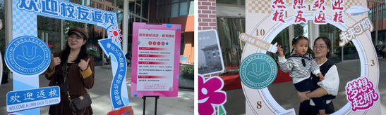 上午9点,迎来了第一批校友。“走过岁月”摄影区成为最吸引人的打卡地,这里布置了图书馆上世纪 50 年代、80 年代以及现代三个不同时期图书馆建筑模型摄影板,让大家可以通过与图书馆建筑合影的形式,穿越时光,用镜头记录下自己与不同时期图书馆的奇妙邂逅,唤起他们学生时代的美好回忆。