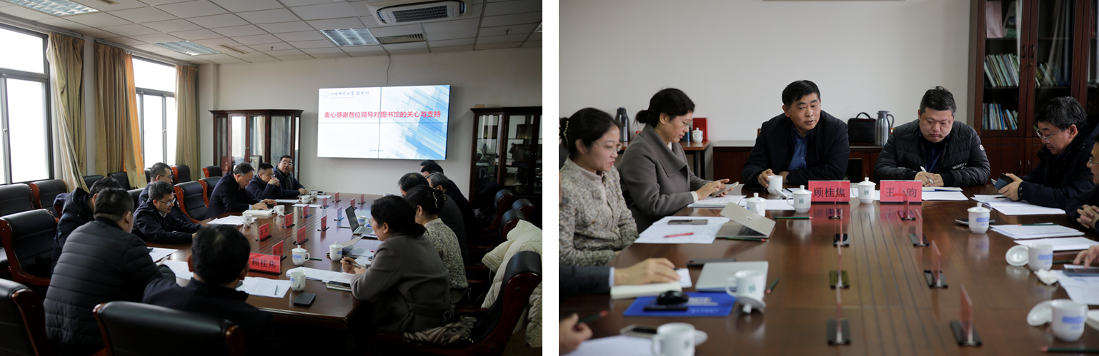图书馆馆长贾铁飞作工作汇报,全面总结了“十四五”期间图书馆在空间环境优化、数智化转型、资源保障体系建设、学科情报服务、特藏保护及馆员队伍建设等方面取得的成效,并客观剖析了当前面临的困难与挑战;在此基础上,汇报阐述了“十五五”期间的发展思路、建设目标与重点任务,明确提出要建成教师教育特色初步显出、数智化服务保障体系基本完备、纸电文献资源覆盖更加均衡、文化与学术影响力持续增强、数据治理与决策支持能力显著提升、“三个贴近第一线”的服务保障初见成效,具有较强育人成才协作、科技创新合作与数据治理源作能力的高水平学术图书馆。图书馆领导班子其他成员结合分管工作作补充交流。