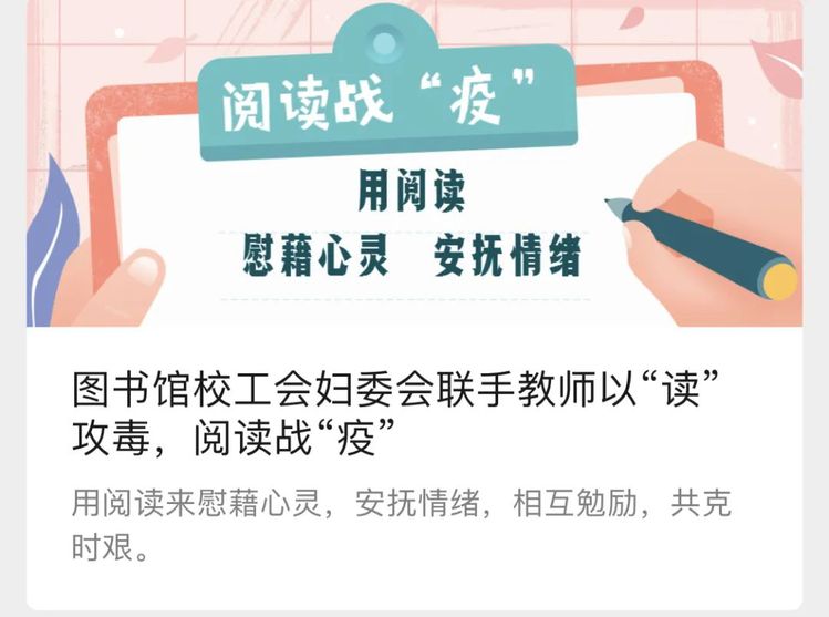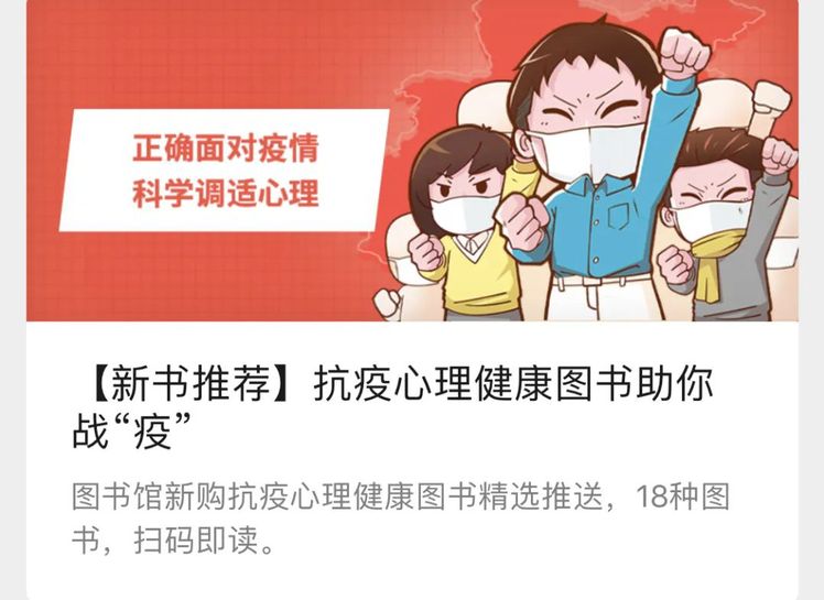 疫情到来,针对师生困居家中可能会产生的情绪、心理等方面的问题,图书馆开展了一系列线上阅读推广活动。