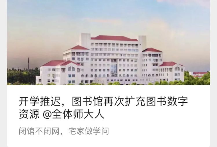 针对疫情开始后,各数据库商开展的各种免费资源情况,上师大图书馆把相关资源进行了整合归类,按我校学科布局,整理了14个免VPN访问的馆藏数字资源以及11个与本校学科相关的网络免费资源,通过微信公众号发布“开学推迟,图书馆再次扩充图书数字资源@全体师大人”,让师生们有针对性地使用疫情期间开放的免费资源。