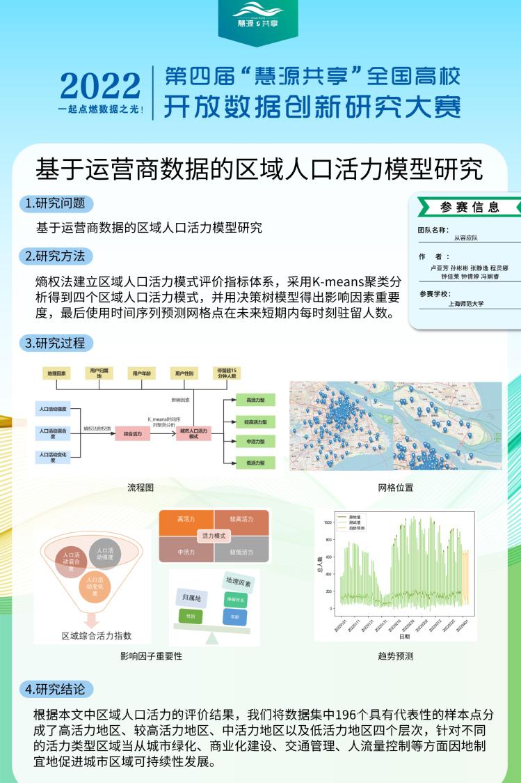 近日,从第四届“慧源共享”全国高校开放数据创新研究大赛组委会获悉,我校信息与机电工程学院的“从容应队”组(组员:卢亚芳,孙彬彬,张静逸,程灵娜,钟情婷,钟佳莱,冯娴睿)参赛项目《基于运营商数据的区域人口活力模型研究》,斩获三等奖,指导老师廉洁荣获优秀指导老师奖。