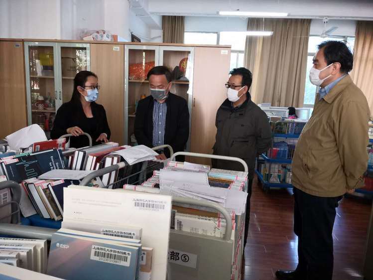 在段鸿书记、贾铁飞馆长陪同下,蒋副校长还到图书馆资源建设部、信息研发部、视听服务部、近代文献中心等部门,看望在岗工作的馆员们,向大家在疫情期间坚守岗位、为全校师生提供优质服务保障表示感谢。(图书馆)