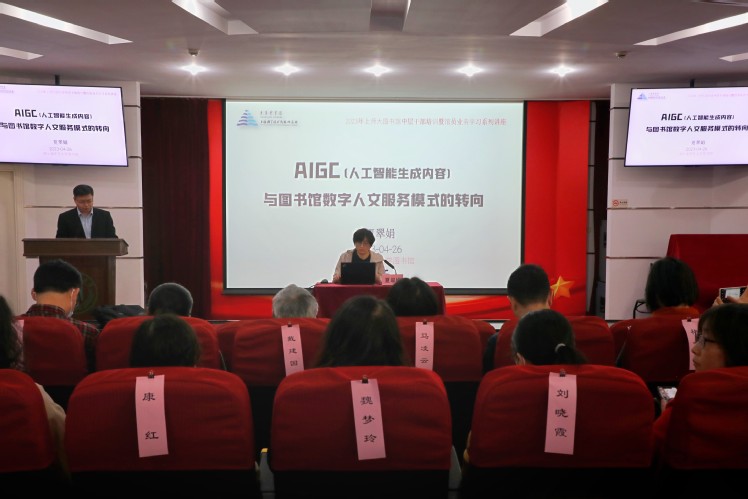 4月26日下午,图书馆中层干部培训暨馆员业务学习培训第二场报告会,在徐汇校区老馆第一观摩厅举行。邀请到上海图书馆研究员、上海市图书馆学会数字人文专业委员会主任夏翠娟作题为《AIGC与图书馆数字人文服务模式的转向》的报告。图书馆党政班子成员及50余位馆员参加会议。讲座由党总支副书记赵龙主持。