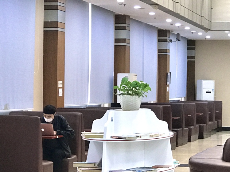 开馆以来,陆续有读者来馆。入馆读者佩戴口罩,凭校园卡和健康码、经体温检测后有序入馆。同一时间段入馆读者人数较多时,为防止读者聚集,馆员引导读者相互之间保持1.5米的间隔距离,馆内秩序井然。