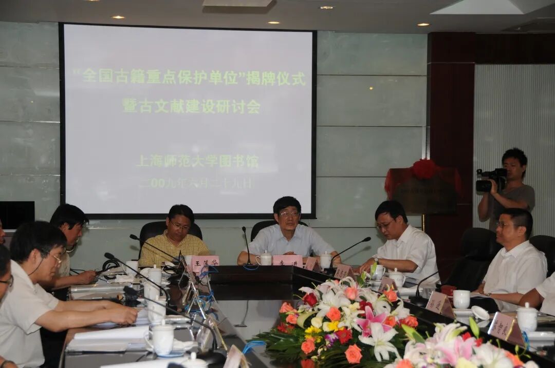 历史的车轮驶入新世纪,图书馆相继迎来郑克鲁、曹旭、俞钢及刘民钢等主事者,图书馆古籍整理与保护工作也迎来新机遇。2007年,按照国务院办公厅发布的《关于进一步加强古籍保护工作的意见》(国办发[2007]6号),国家有关部门启动了“中华古籍保护计划”项目,其中全国古籍普查登记是实施该计划最重要的基础性工作,也是新中国成立以来第一次由政府组织、收藏单位参加最多的一次全国性古籍普查登记工作。次年,时任图书馆馆长俞钢教授建议组建古文献特藏部,新辟“古文献精品陈列室”,建设古籍数字化室及修复工作室。2009年,上海师范大学图书馆获批成为首批“上海市古籍重点保护单位”和第二批“全国古籍重点保护单位”。是年,委派陈金林先生带领团队克服专业馆员短缺等困难,对徐汇、奉贤两校区图书馆所藏全部古籍进行全面清点。与此同时,作为国家“中华古籍保护计划”项目之一,本馆全面启动馆藏古籍普查登记工作。按计划扎实开展馆藏古籍保护工作,建立一系列规章制度,完成馆藏古籍定级工作,申报《国家珍贵古籍名录》和《上海市珍贵古籍名录》,对珍贵古籍重点保护。