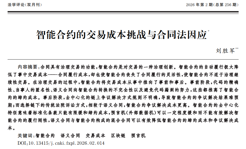 哲学与法政学院刘胜军教授在《法学评论》上发表学术论文